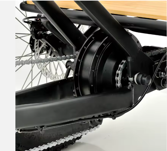 48V 250W , BAFANG Nabenmotor, 110 NM hinten unterm Träger direckt vor der Achse