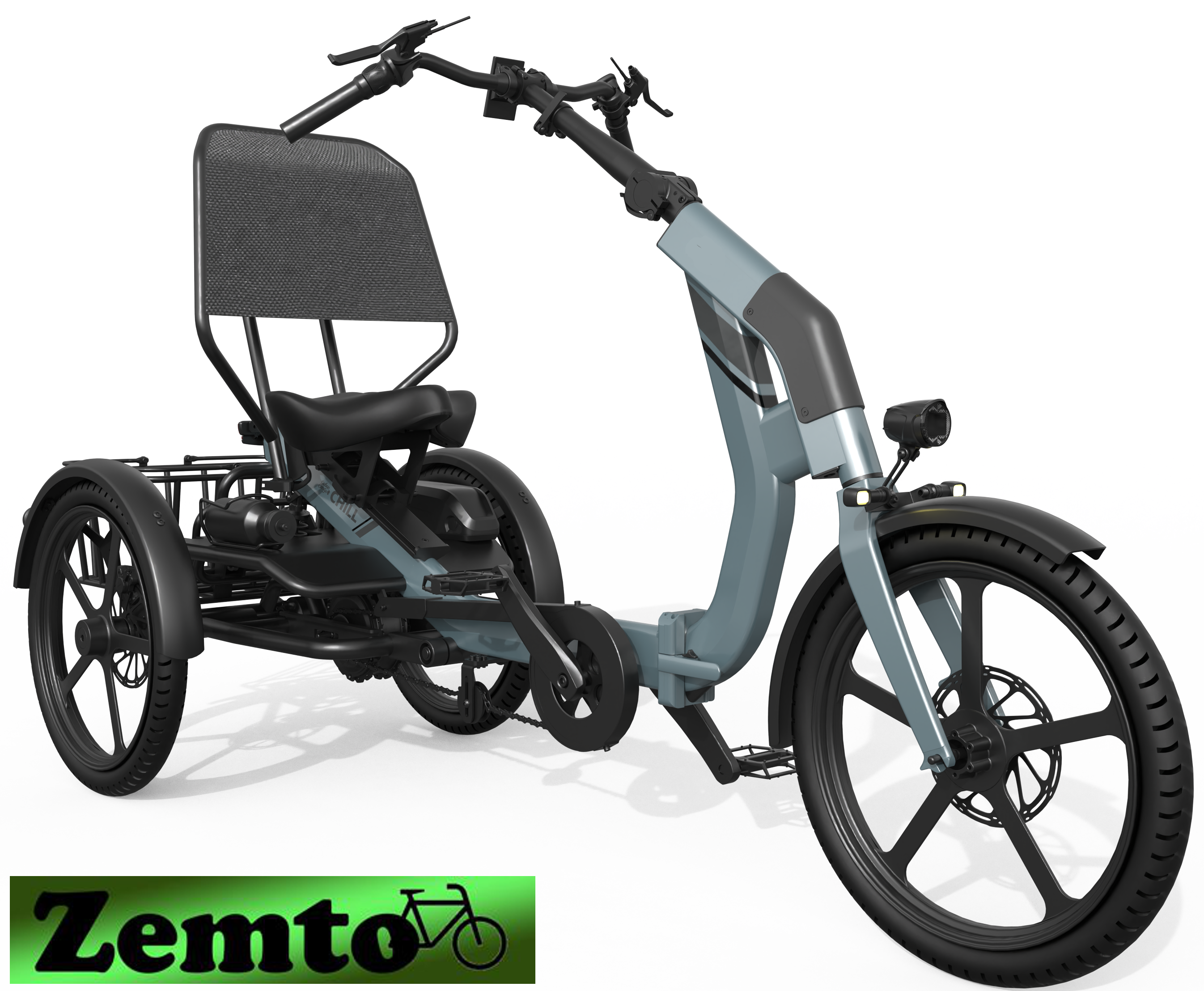 Der UM CHILL ist ein kompaktes, transportables Liegedreirad mit Elektroantrieb für Fahrer, die